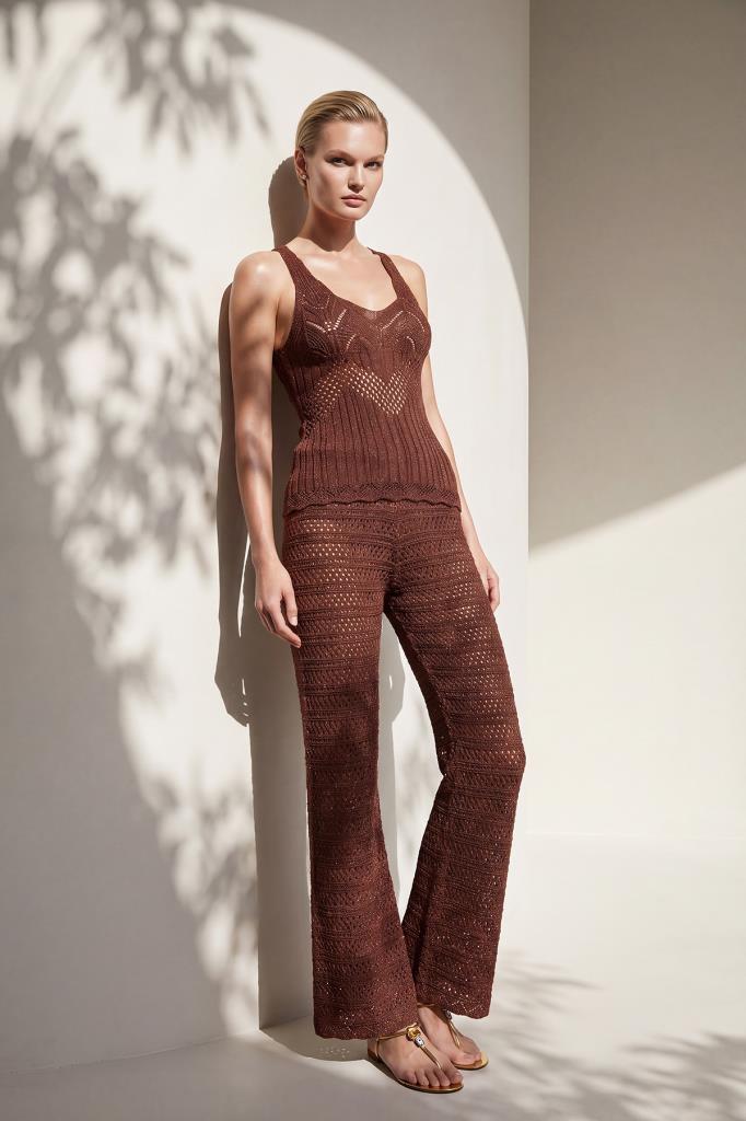 Ajurlu Beli lastikli Astarlı Kiremit Pantolon