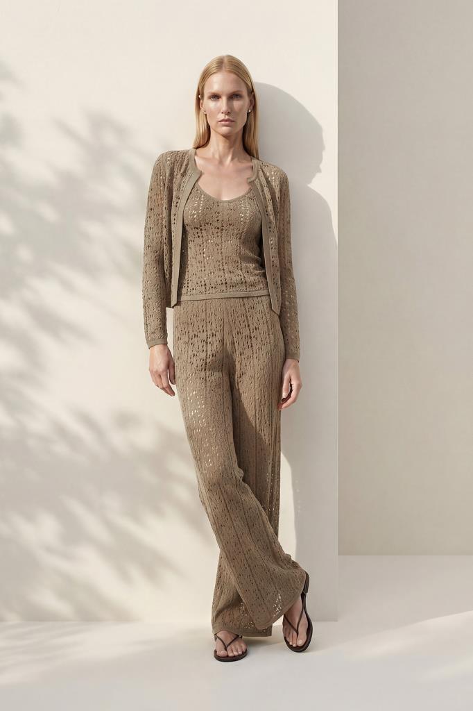 Bu ajur desenli triko hırka, hafif yapısı ve zarif dokusu ile öne çıkar. İnce triko yüzeyi nefes alır ve gün boyu konfor sunar. Önü açık tasarımı ile katmanlı kombinlere modern bir dokunuş katar.