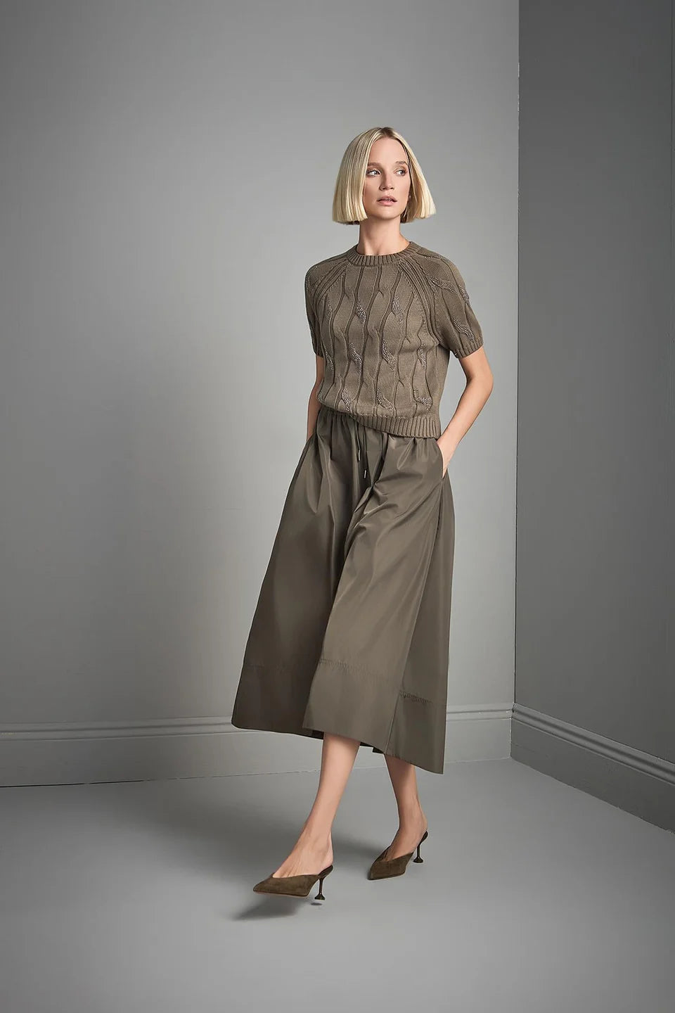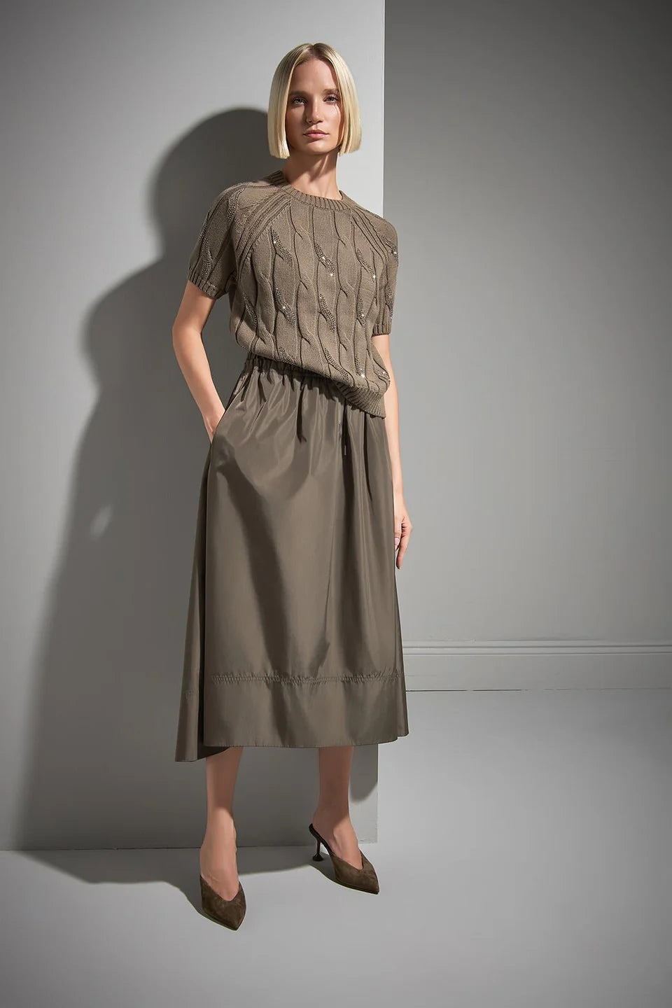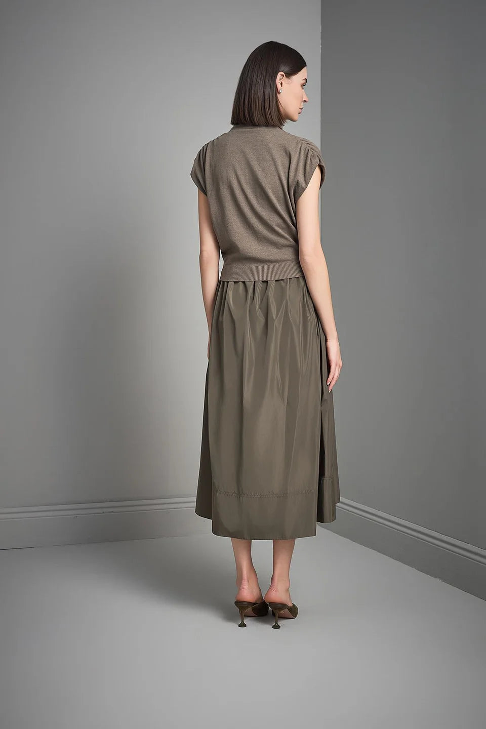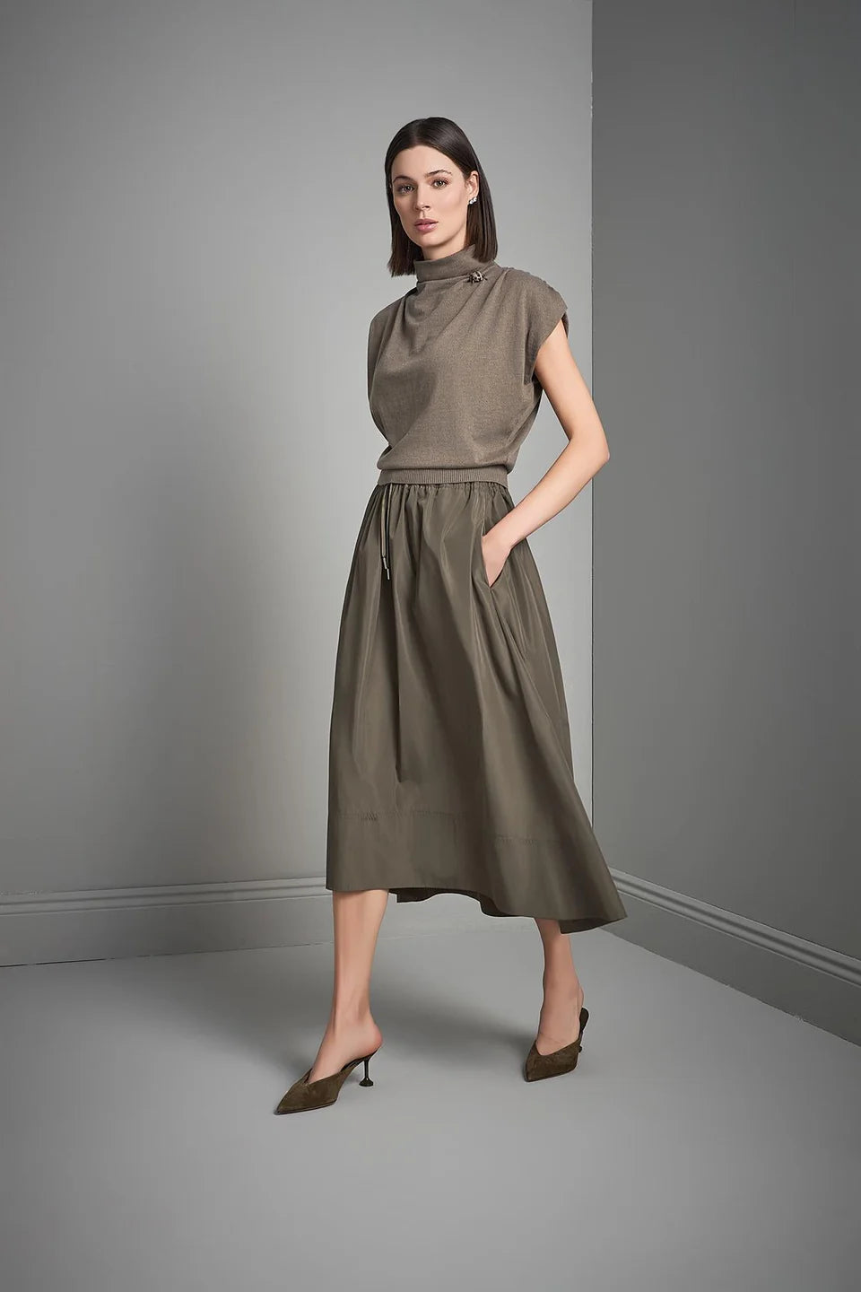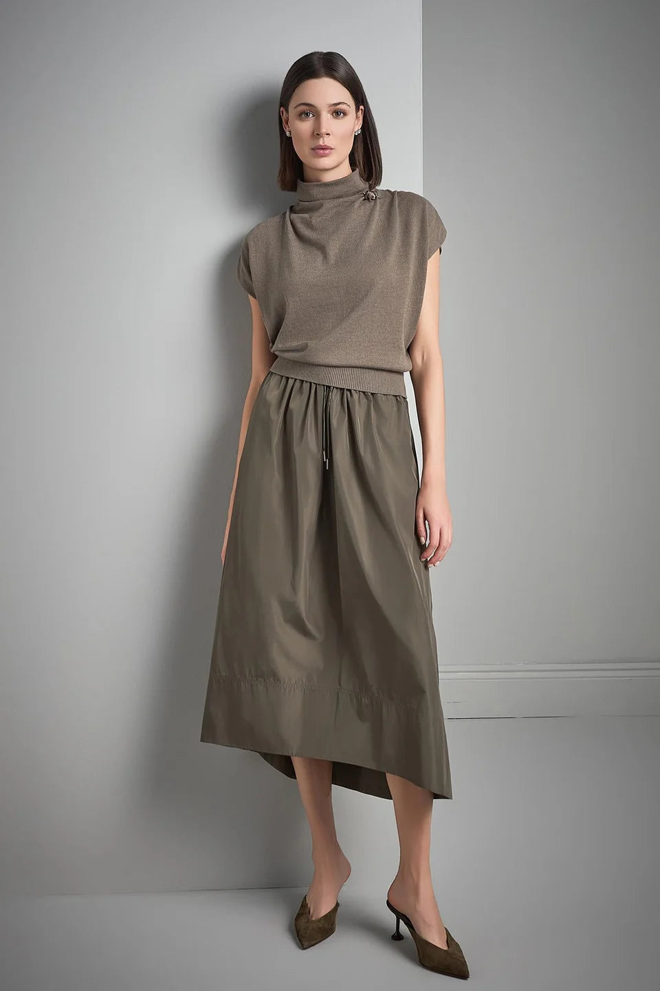 Beli Büzgülü Yeşil Maxi Kumaş Etek