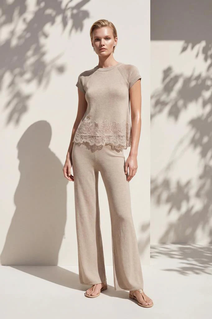 Beli Lastikli Bol Paça Astarlı Bej Pantolon