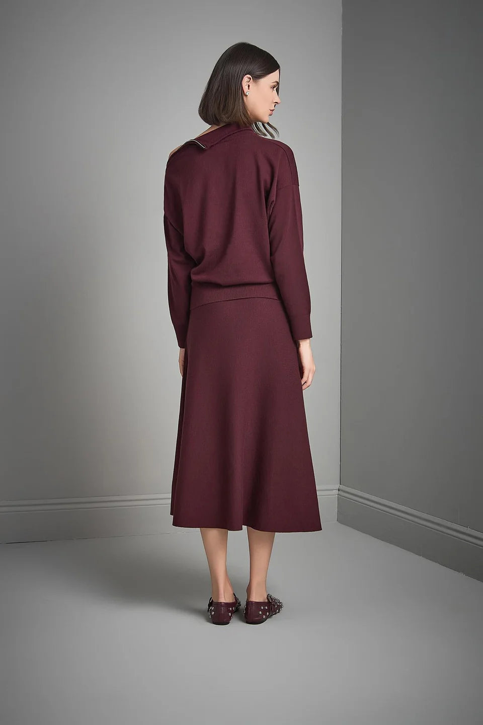 Beli Lastikli Kloş Midi Bordo Triko Etek