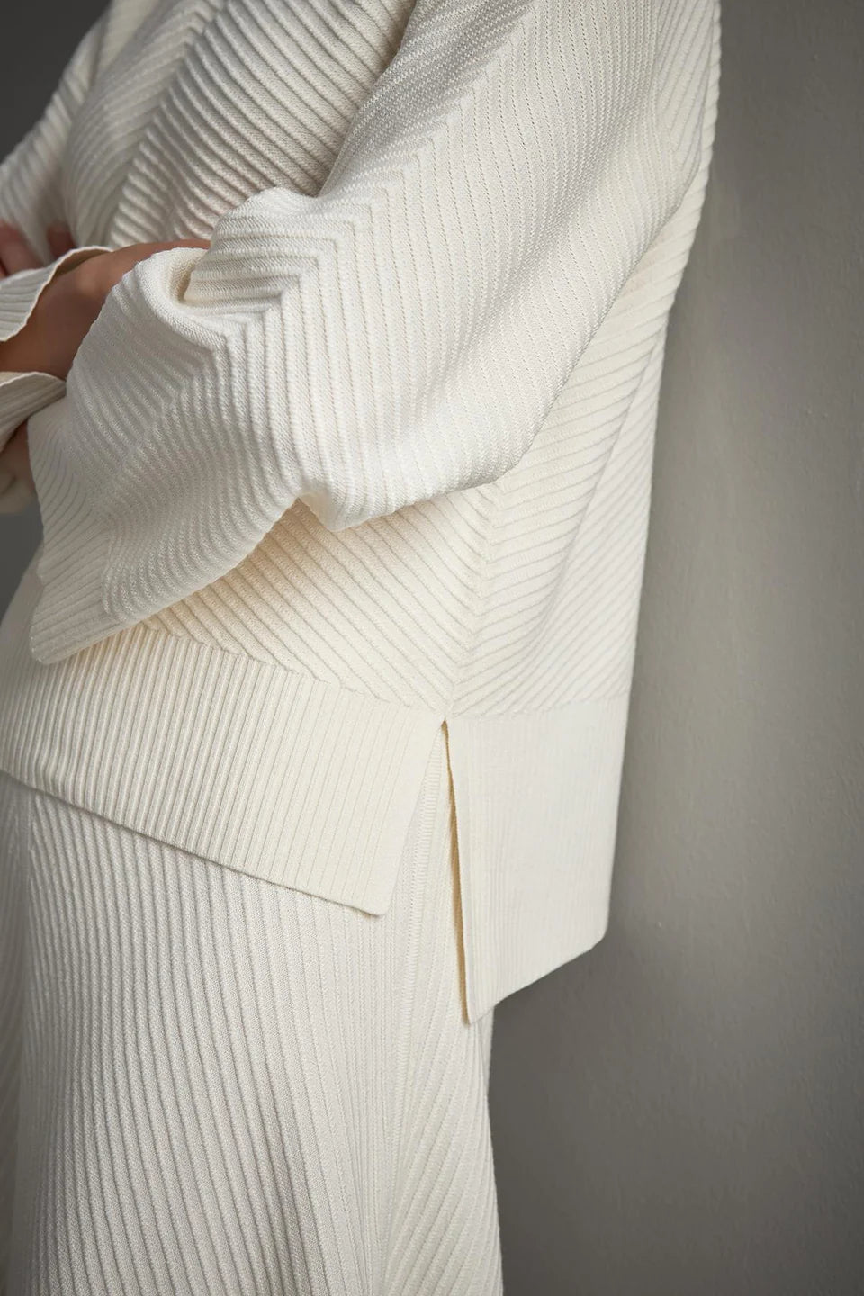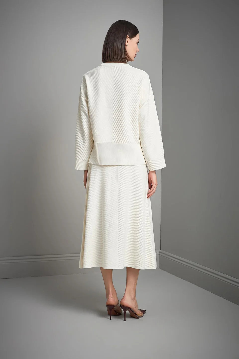 Bisiklet Yaka Verev Desenli Ekru Triko Kazak
