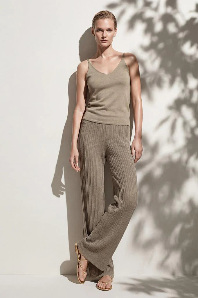 Bol Paça Ajurlu Astarlı Bej Pantolon