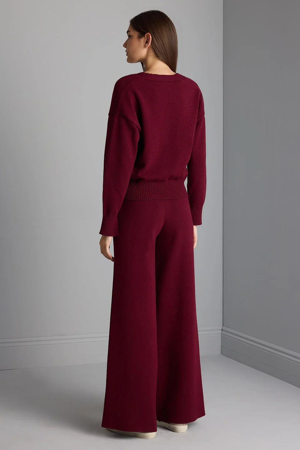 Bordo Yüksek Bel Triko Palazzo Pantolon