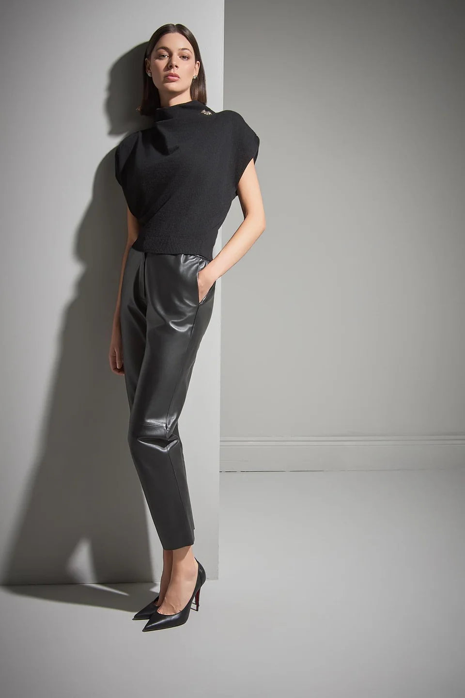 Broş Detaylı Vatkalı Siyah Triko Bluz