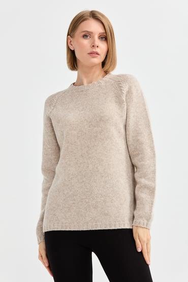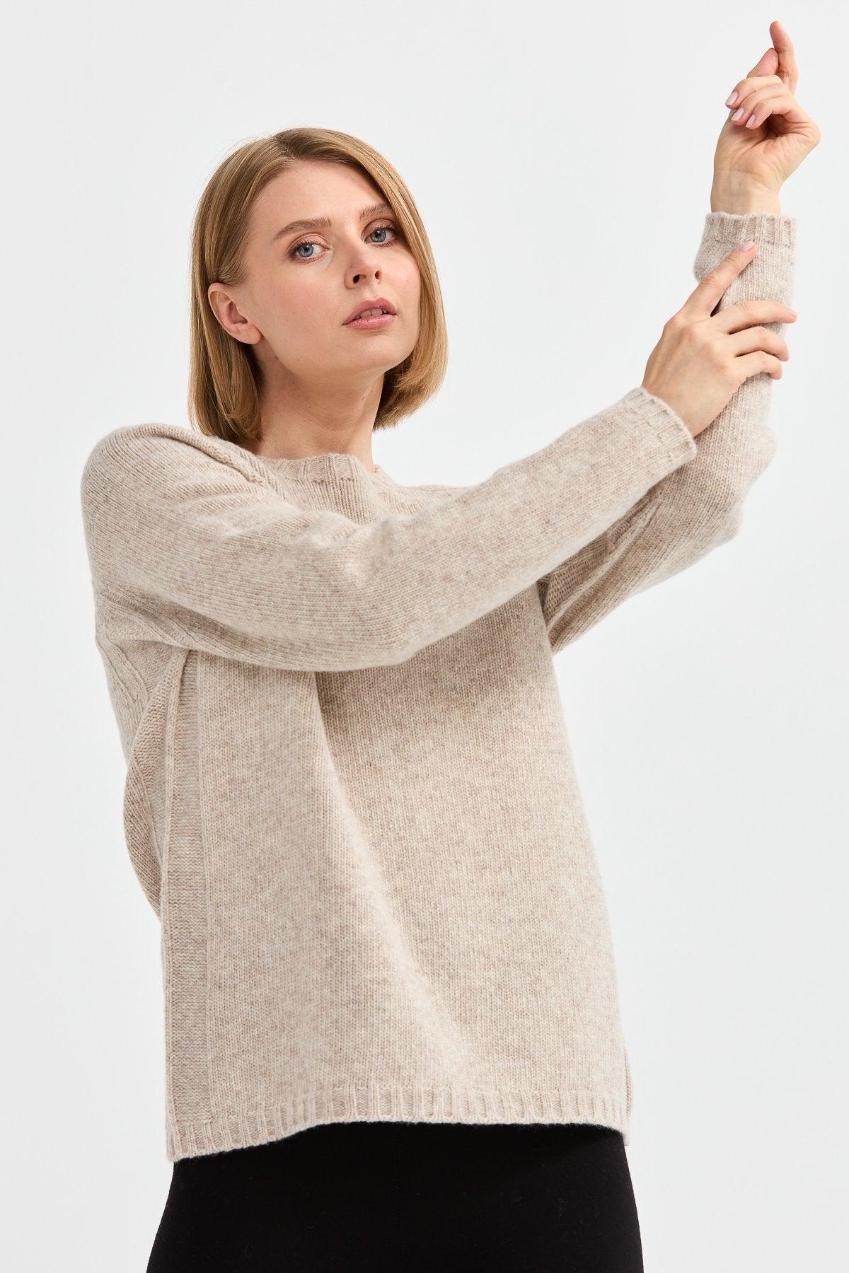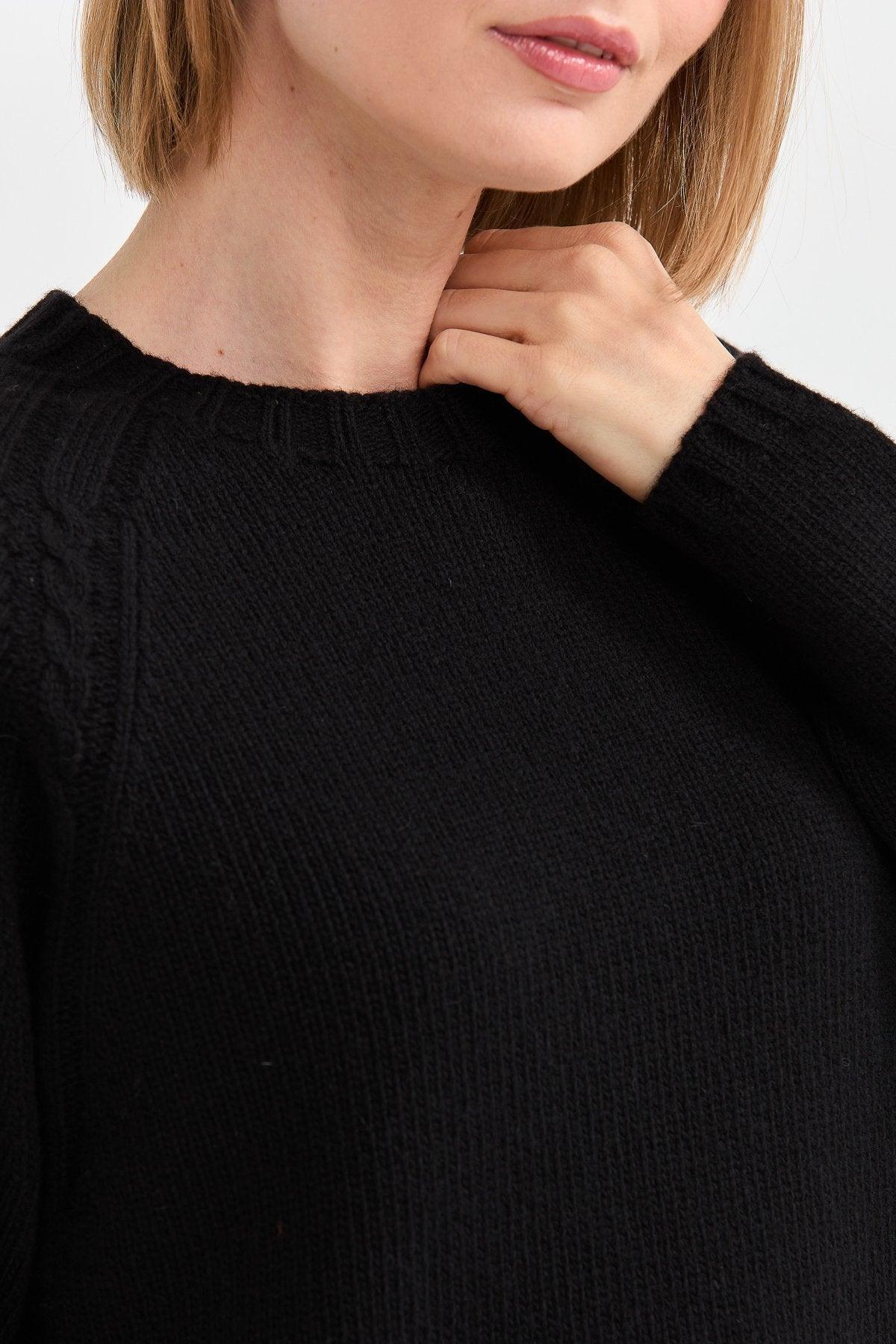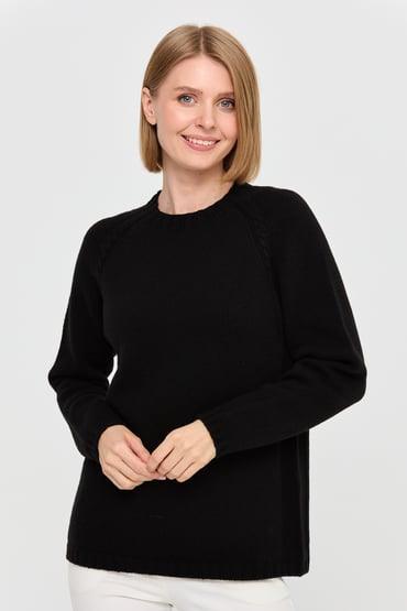Sıfır Yaka Omzu Saç Örgülü Yün Kazak