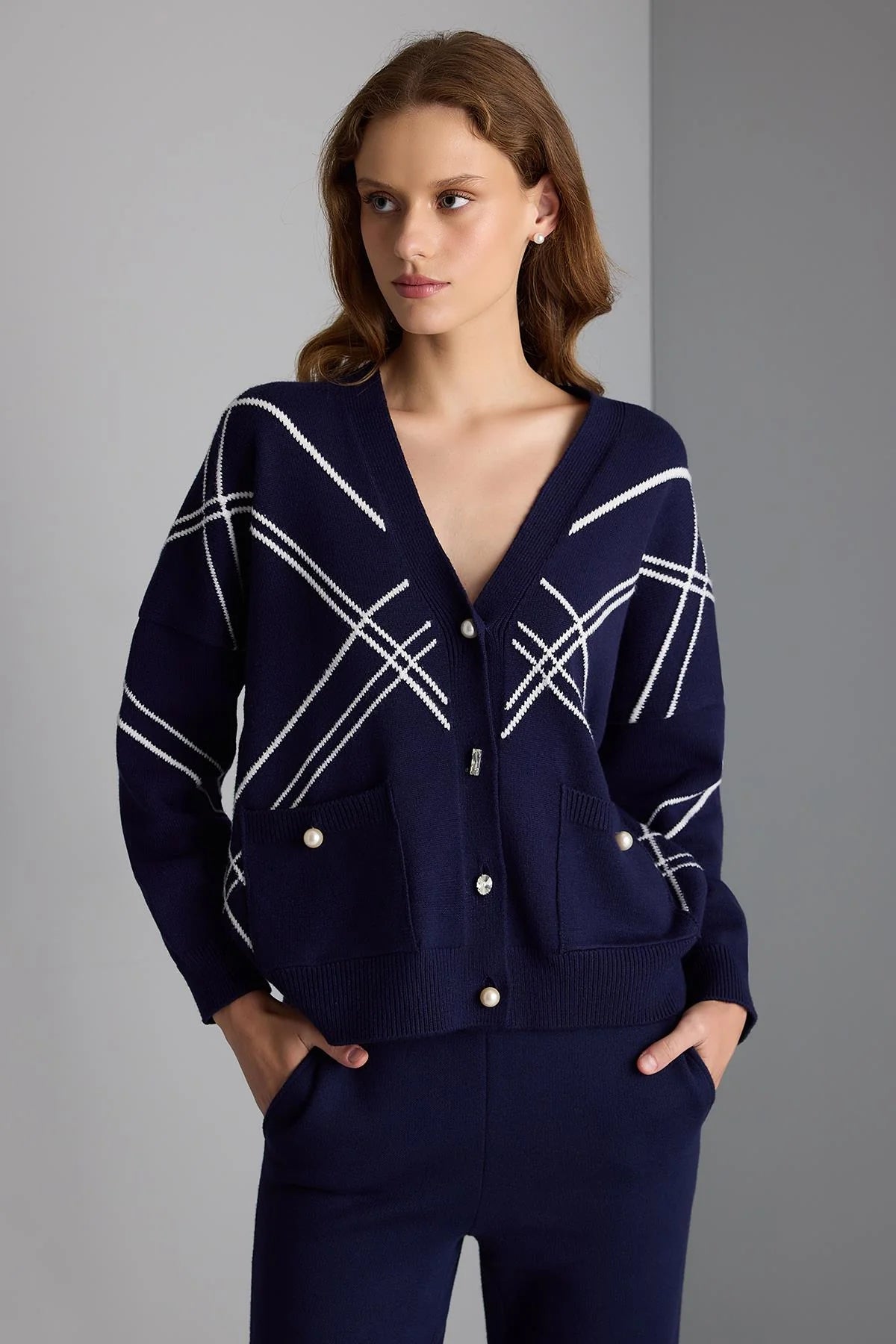 Desen/Model : İnci Düğme Süs Cepli, Ekoseli, Bol Kesim
