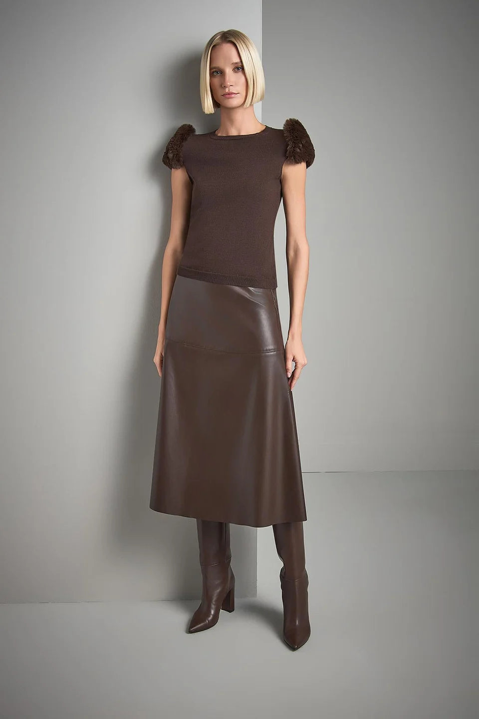 Fermuar Detaylı Midi Kahverengi L Beden Deri Etek