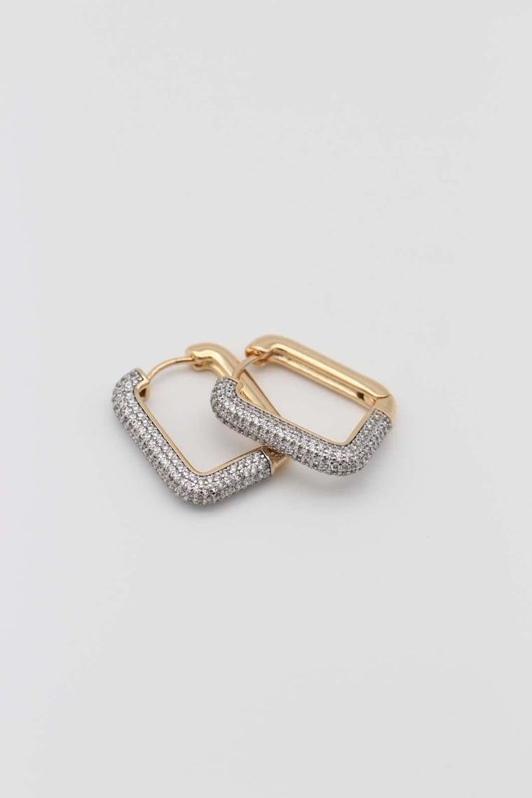 İthal Gold Küpe Dikdörtgen Yarı Taşlı Küpe