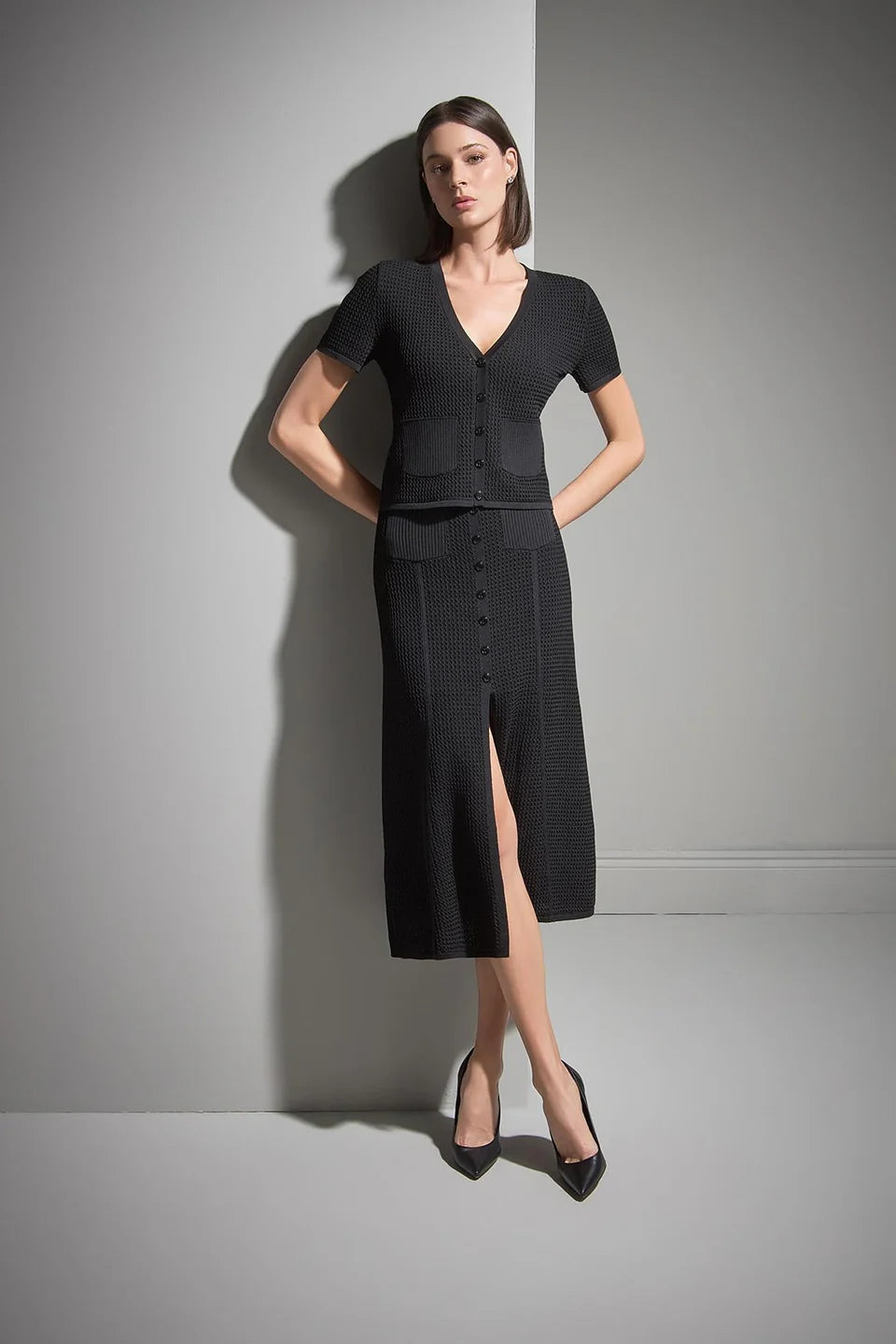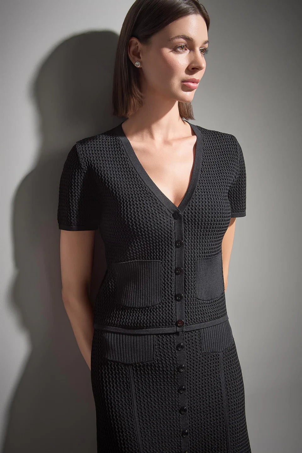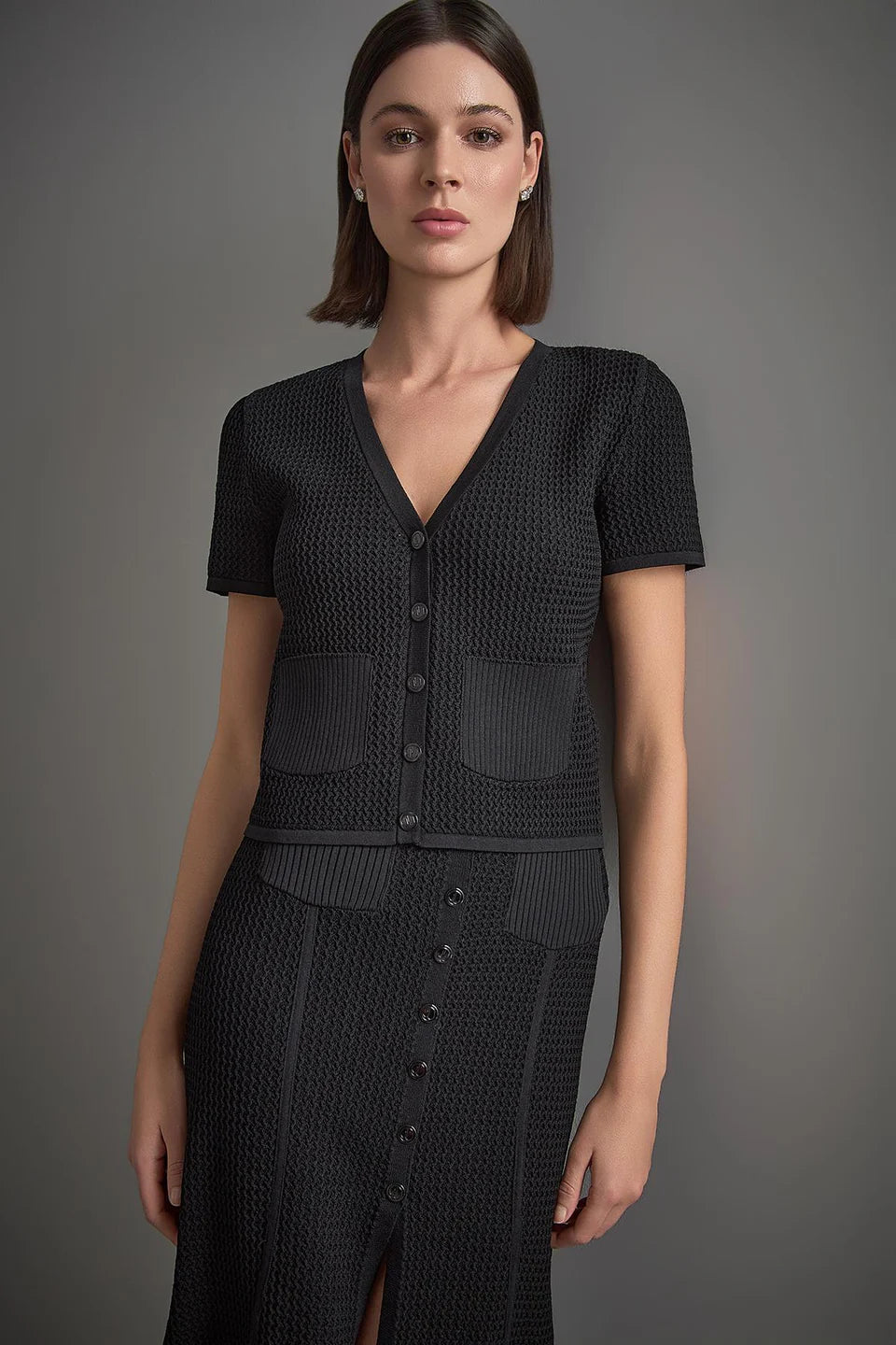 Kısa Kollu Cep Detaylı Siyah Triko Hırka