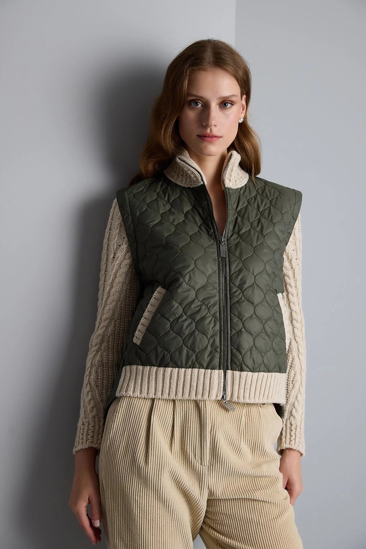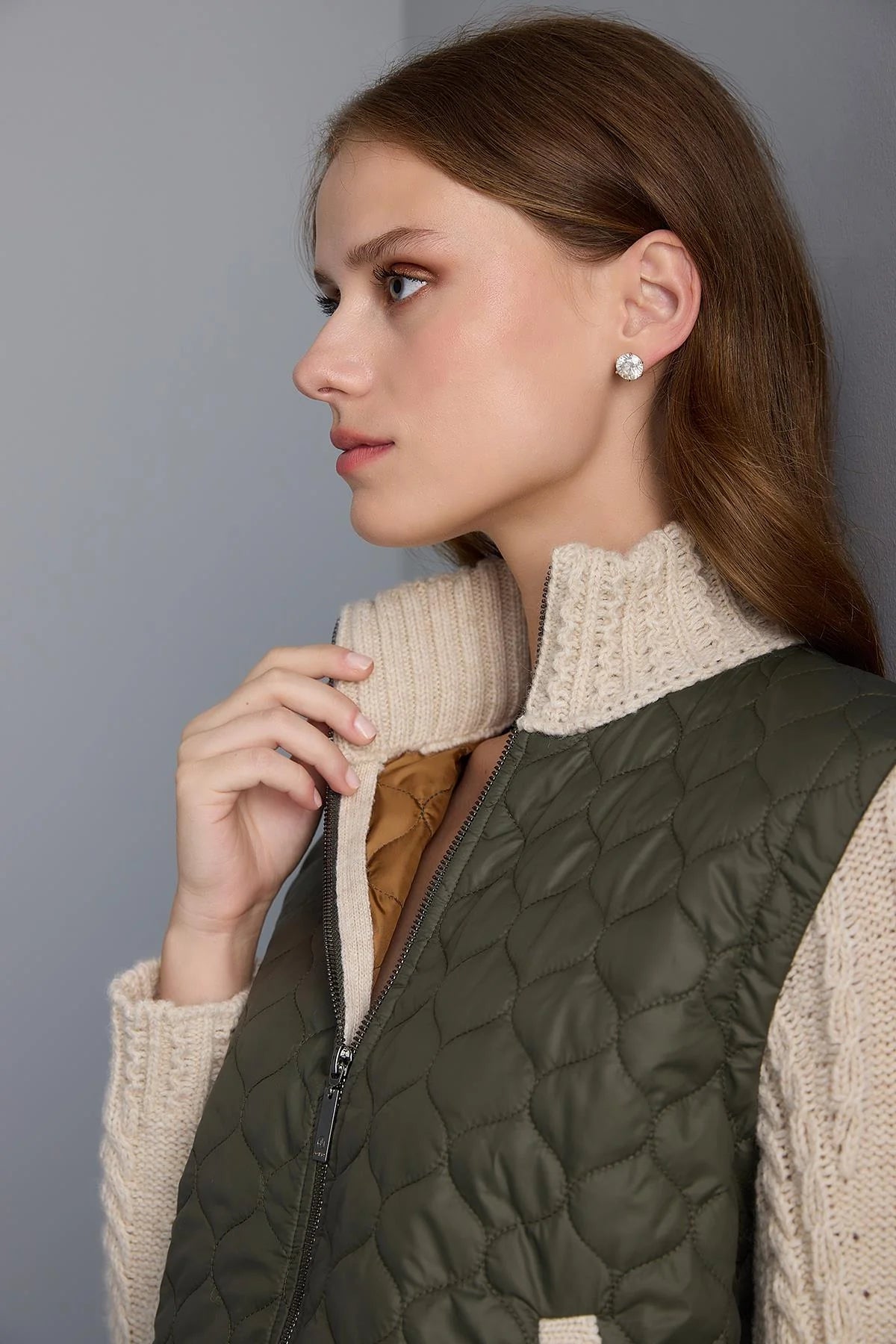 Saç Örgü Detaylı Kapitoneli Triko Ceket