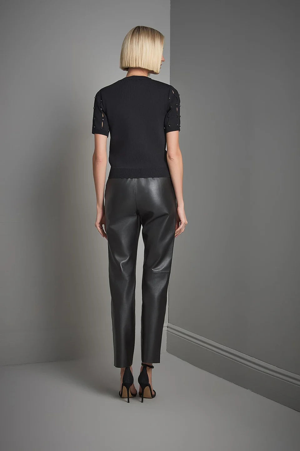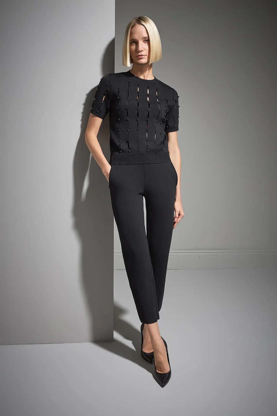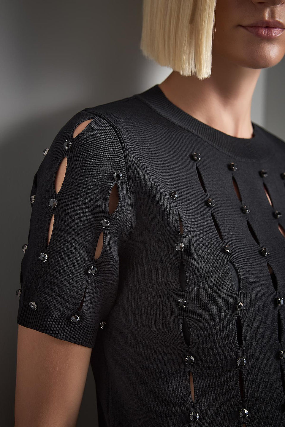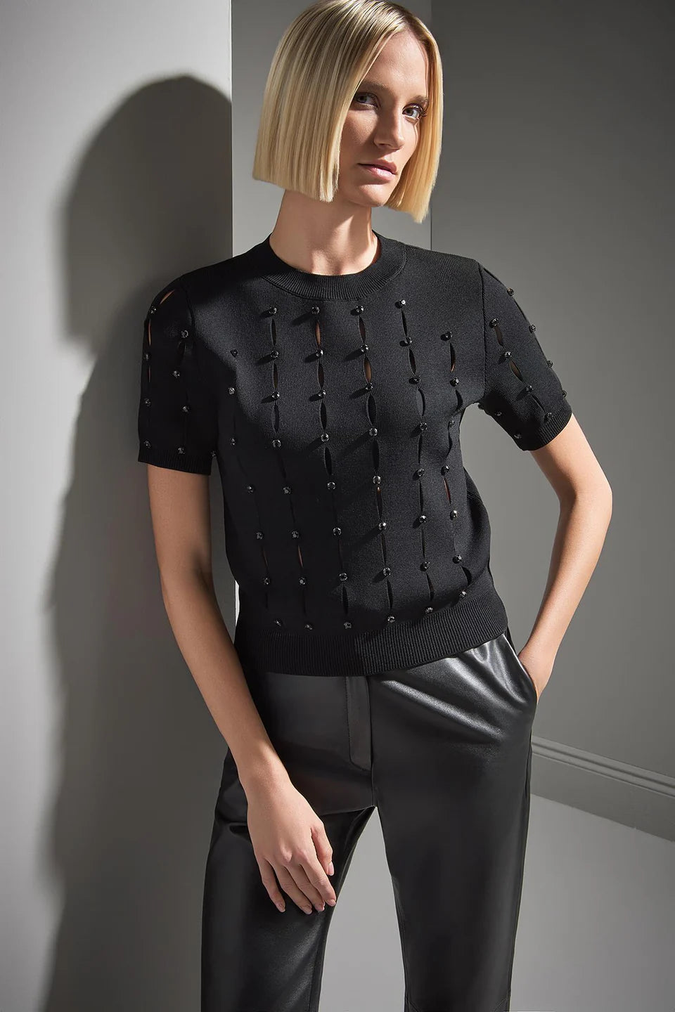 Taş Baskılı Kısa Kollu Siyah Triko Bluz