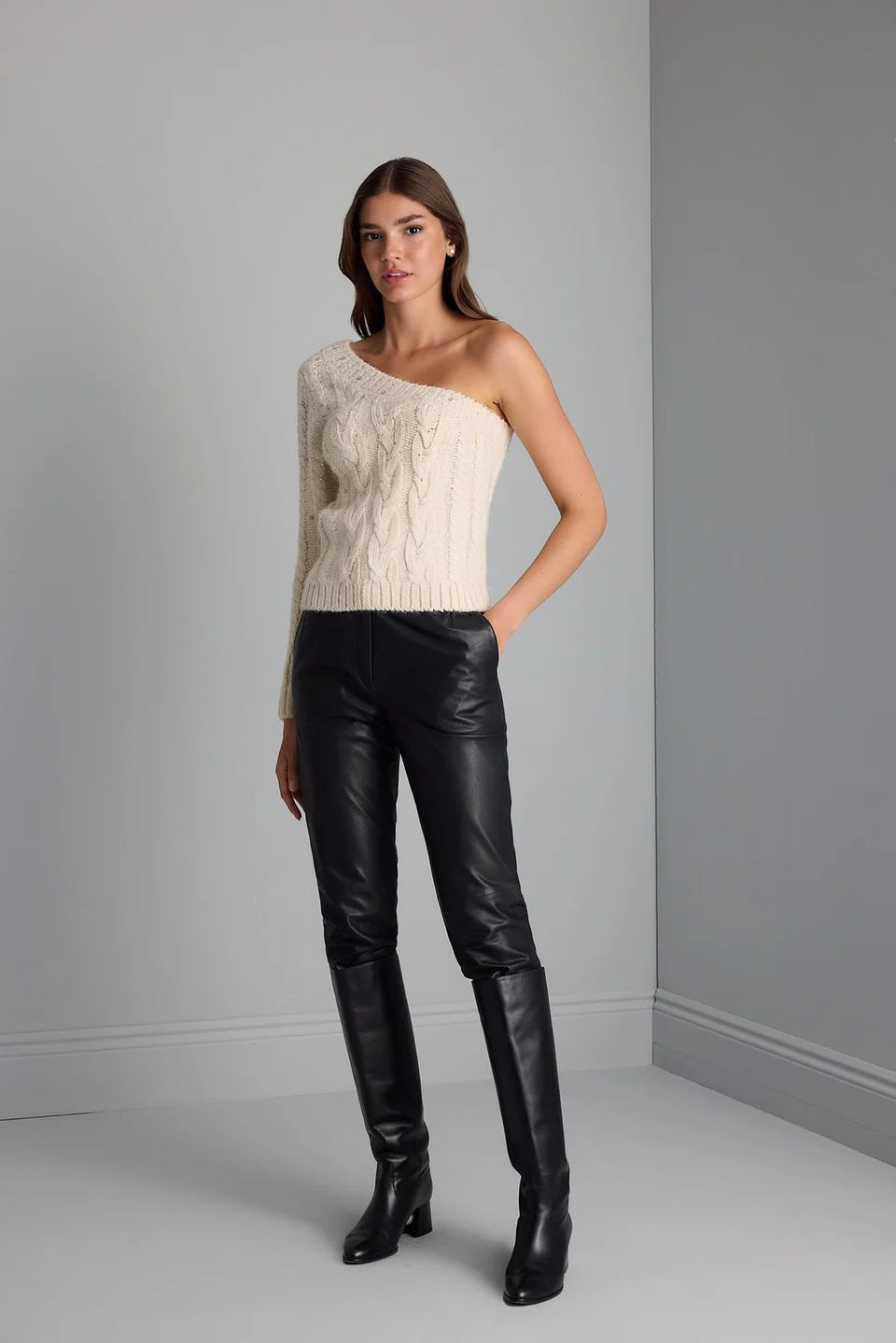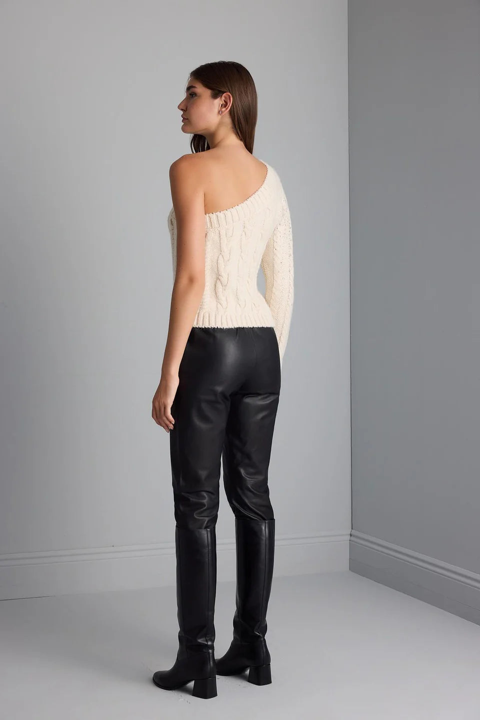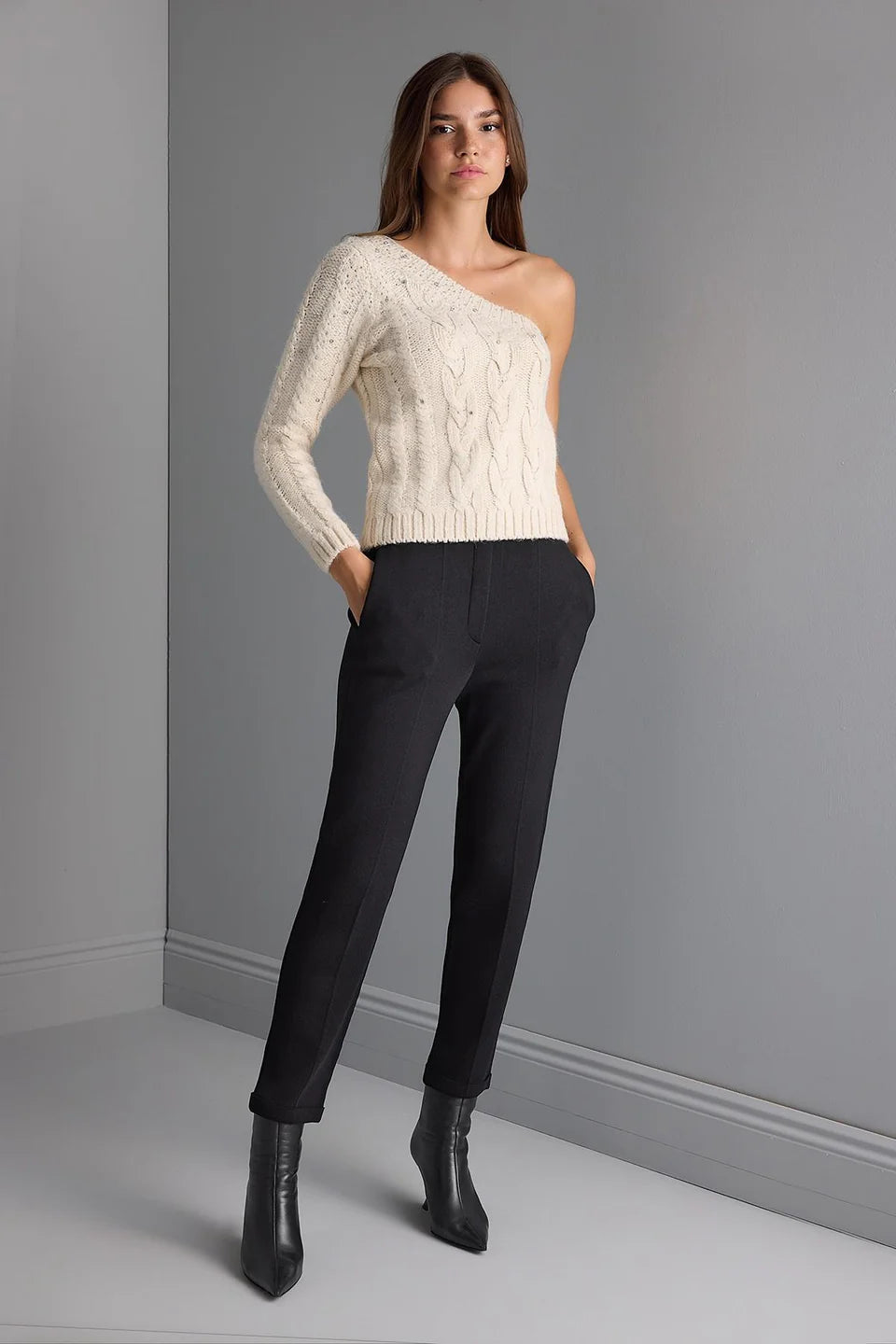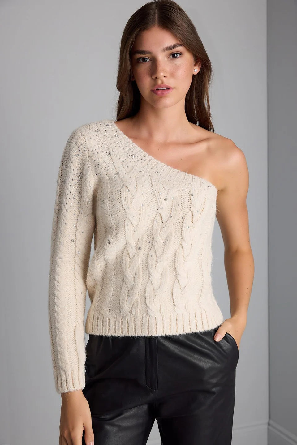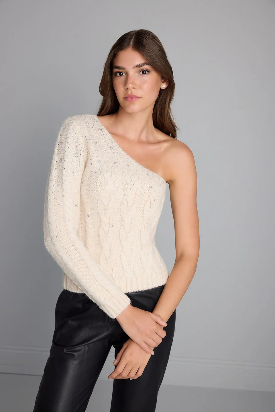 Tek Omuz Taşlı Saç Örgü Triko Kazak