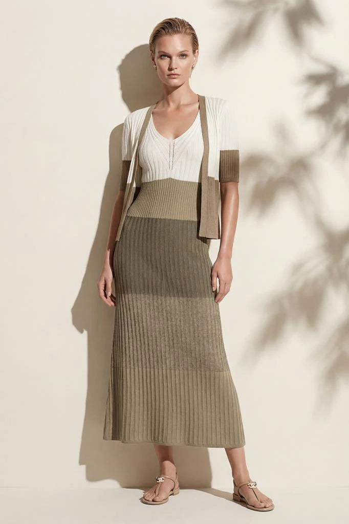 V Yaka Renk Bloklu Multi Hırka