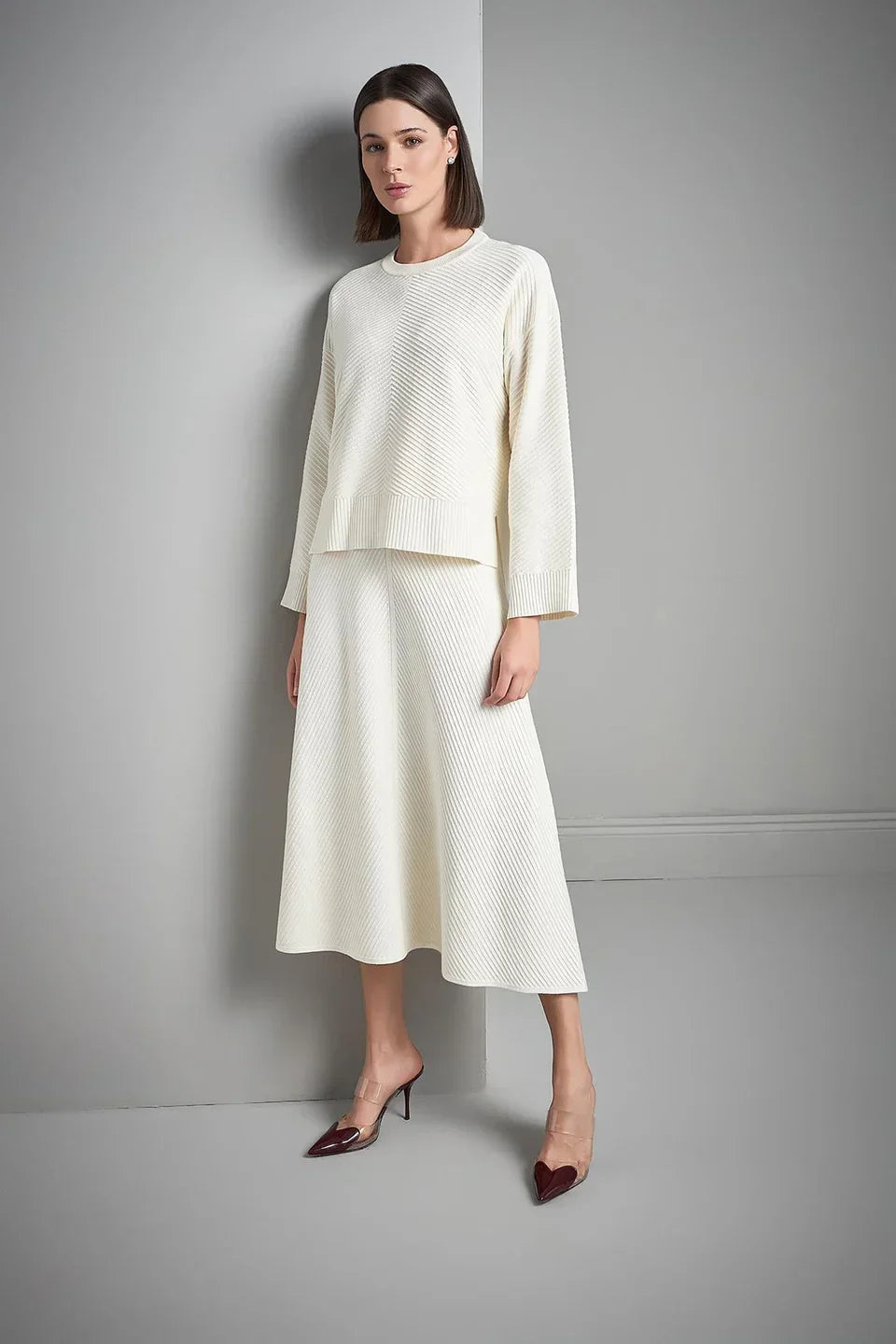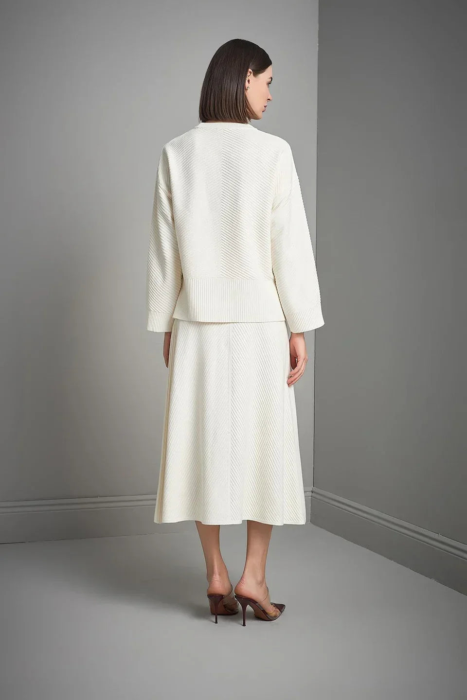 Verev Desenli Kloş Ekru Midi Triko Etek